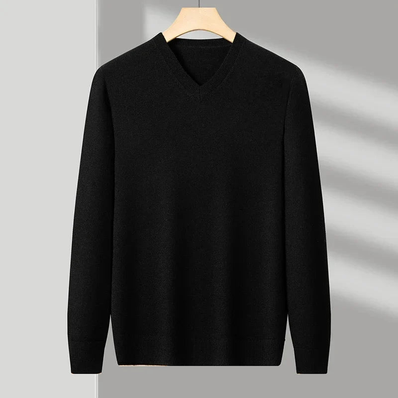 Tailored from a premium wool blend, this V-neck sweater balances warmth, softness, and breathability for versatile wear. Designed with hand-finished detailing and a clean silhouette, it layers effortlessly for both casual and refined looks.